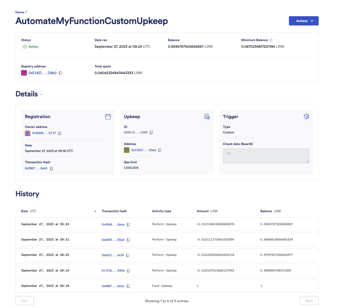 Read the Automate your Functions (Time-based Automation) tutorial before you follow the steps in this example. This tutorial explains how to trigger your functions using an Automation compatible contract.